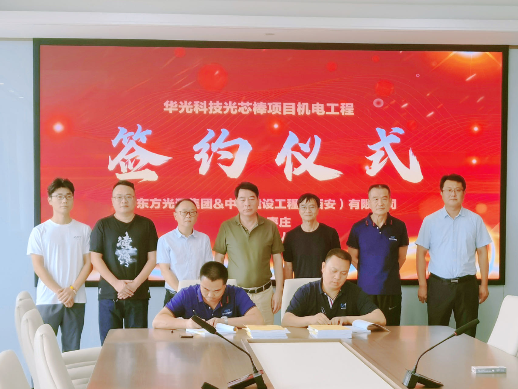 正值暑末,我司祁天理總經理在東方光源集團總經理潘總的精心安排下,在眾位責任人的見證下,正式簽下了“東方光源集團有限公司通信光棒項目機電安裝及凈化工程”施工合同書,這預示著,東方光源集團通信光棒事業蓬勃發展,形成年產光芯棒400噸生產能力, 中潔建設必將在該項目的建設中施展我司的專業技能,為項目合格交付保駕護航。