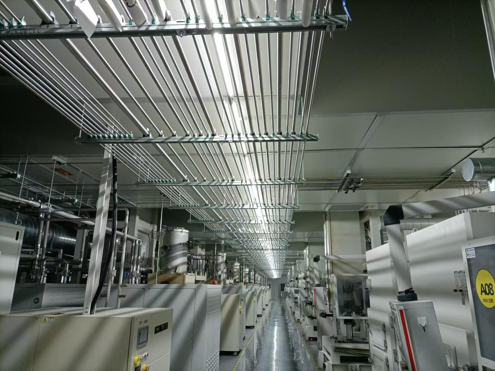 該項目位于山東省棗莊市高新技術產業開發區,總建筑面積約29000平方米,我司為施工總承包,承包內容為:光棒生產廠房、地下消防水池及泵房等單體的暖通工程、電氣工程、自控工程、弱電工程、氣動工程、工藝設備管路及其二次配工程及無線AP、廢水廢氣處理設備及相關機電管路(包括含氟廢水、廢氣處理設備及管路)、氦氣回收系統(由專業廠商深化完成)、中央除塵系統、給排水工程、消防工程、消防排煙工程、特氣系統、潔凈室裝修(包括潔凈室的環氧地面、潔凈圍護結構、吊頂綜合排布、風淋、貨淋、潔凈門窗)及潔凈室鋼平臺(包含操作用的特定鋼平臺)、整體管線的空間管理、潔凈管制等內容。
